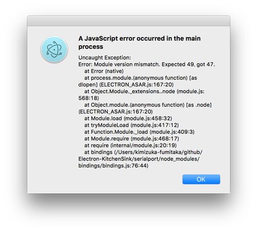 Electronアプリでserialportをrequireして使おうとすると、 Uncaught Exception: Error: Module version mismatch. Expected 49, got 47. at Error (native)的なエラーが発生します。そんな時は、アプリケーションのルートにて、 cd node_modules/serialport…